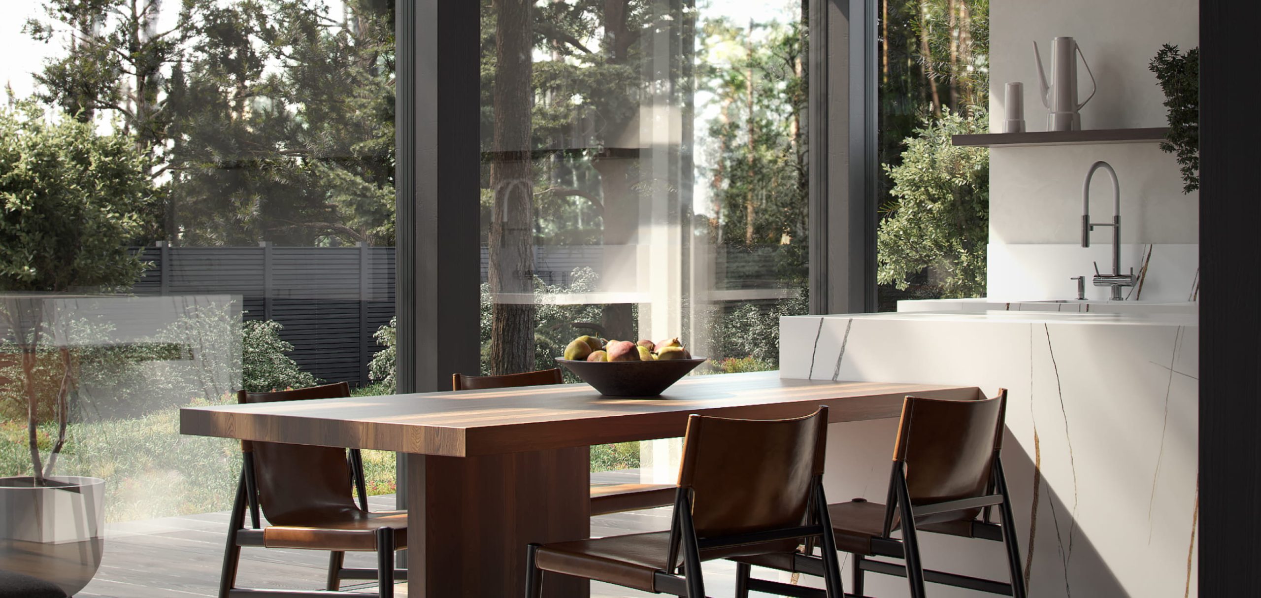 Пейзаж и природа становятся лучшими стилистами вашего интерьера, а мы помогаем вам создать пространство, где это возможно.