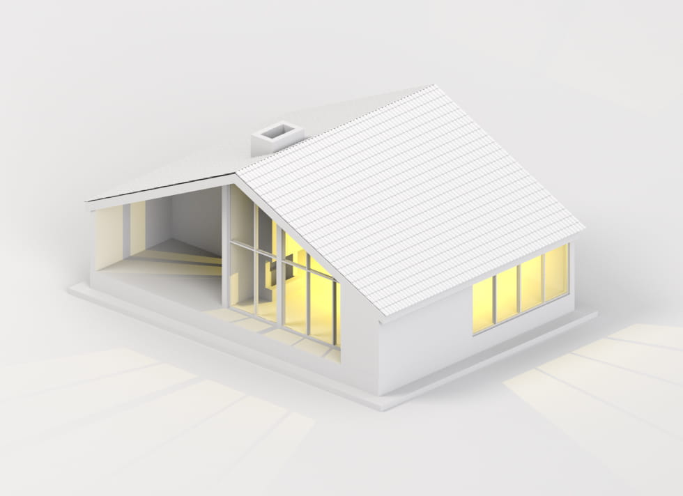 превращая дом в лёгкую игру света и тени
